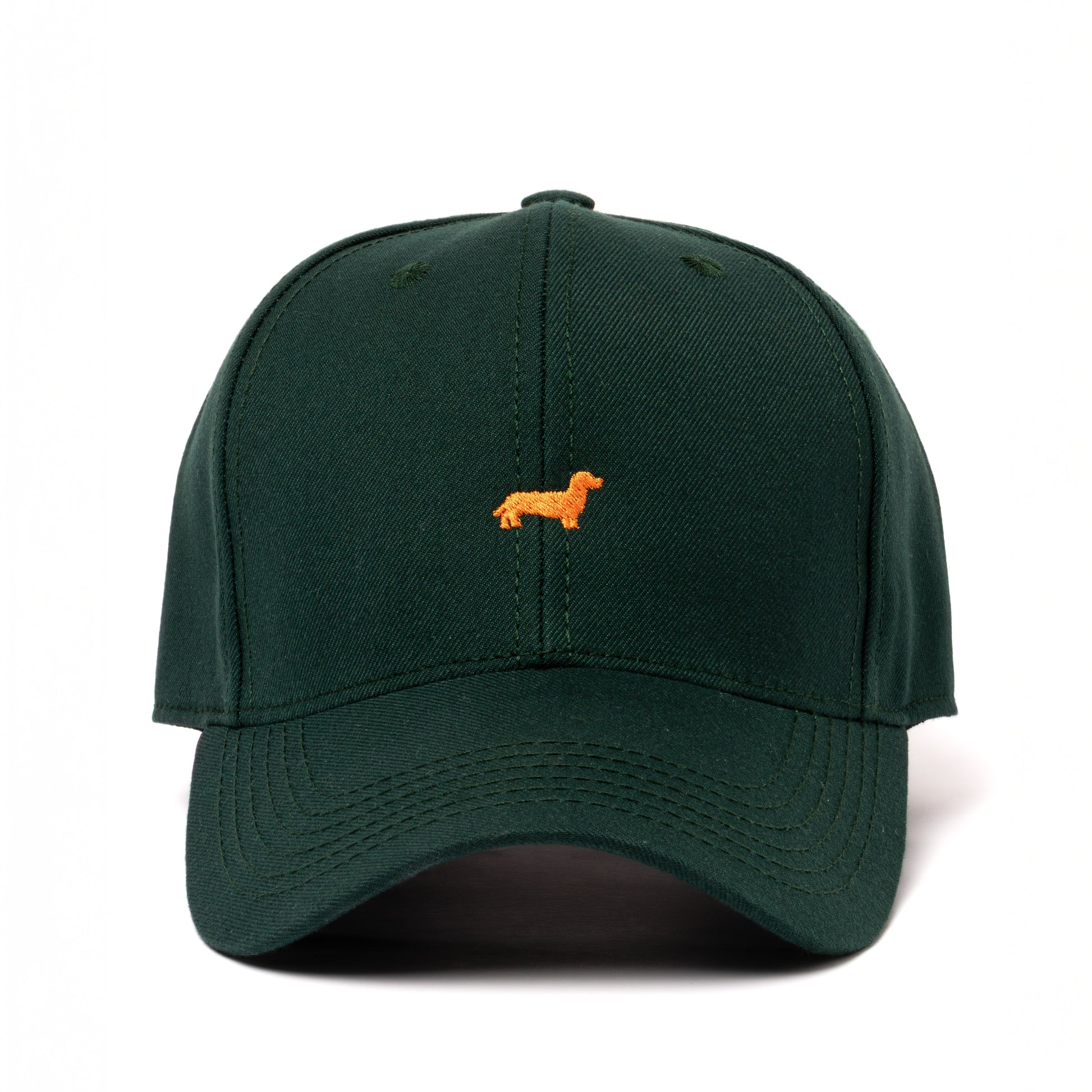 Verde botella realzado por un vibrante bordado naranja de un perro salchicha alargado. Seis paneles, visera curva y cierre trasero fácil de ajustar para un fit a medida. Un diseño divertido y original, pensado para quienes quieren destacar su afición por esta raza de espíritu audaz en cualquier plan cotidiano.